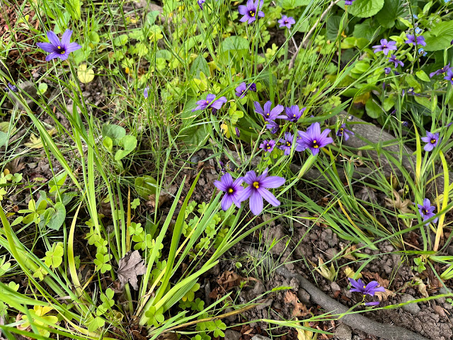 | Blue eyed Grass (Sisyrinchium bellum) in full display at Ren Brown's garden in Bodega Bay, California. |